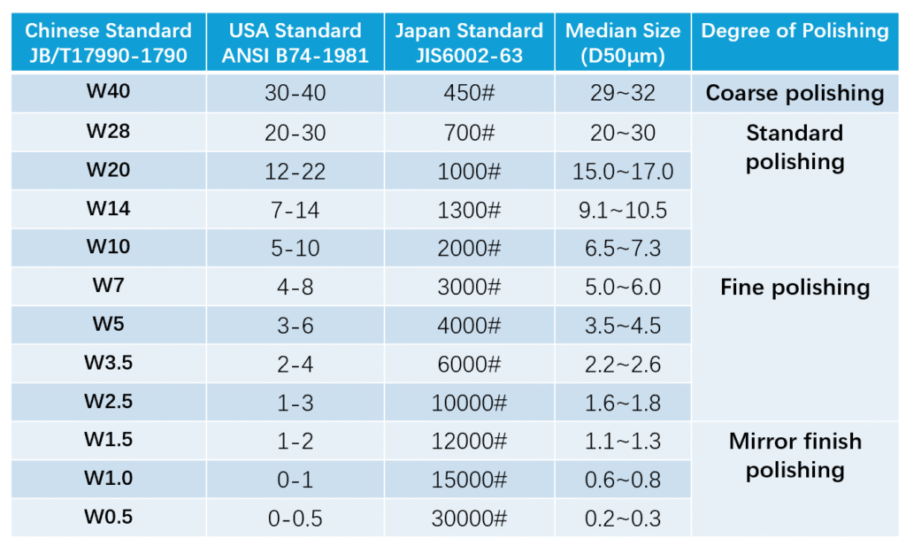 Available Grit Sizes and Polishing Degree